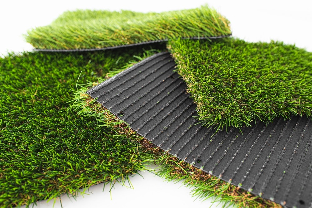Unlike indoor/outdoor carpet, artificial turf is crafted specifically to replicate the look and feel of natural grass. That means instead of looped fibers, turf is constructed of thousands of individual blades of fake grass. These are free-standing blades, generally much thicker than carpet fibers, and not looped at the end. This construction gives artificial turf a loose, flowy feel similar to natural grass—but makes it much more likely to show crushing and matting marks than low-pile indoor/outdoor carpet.